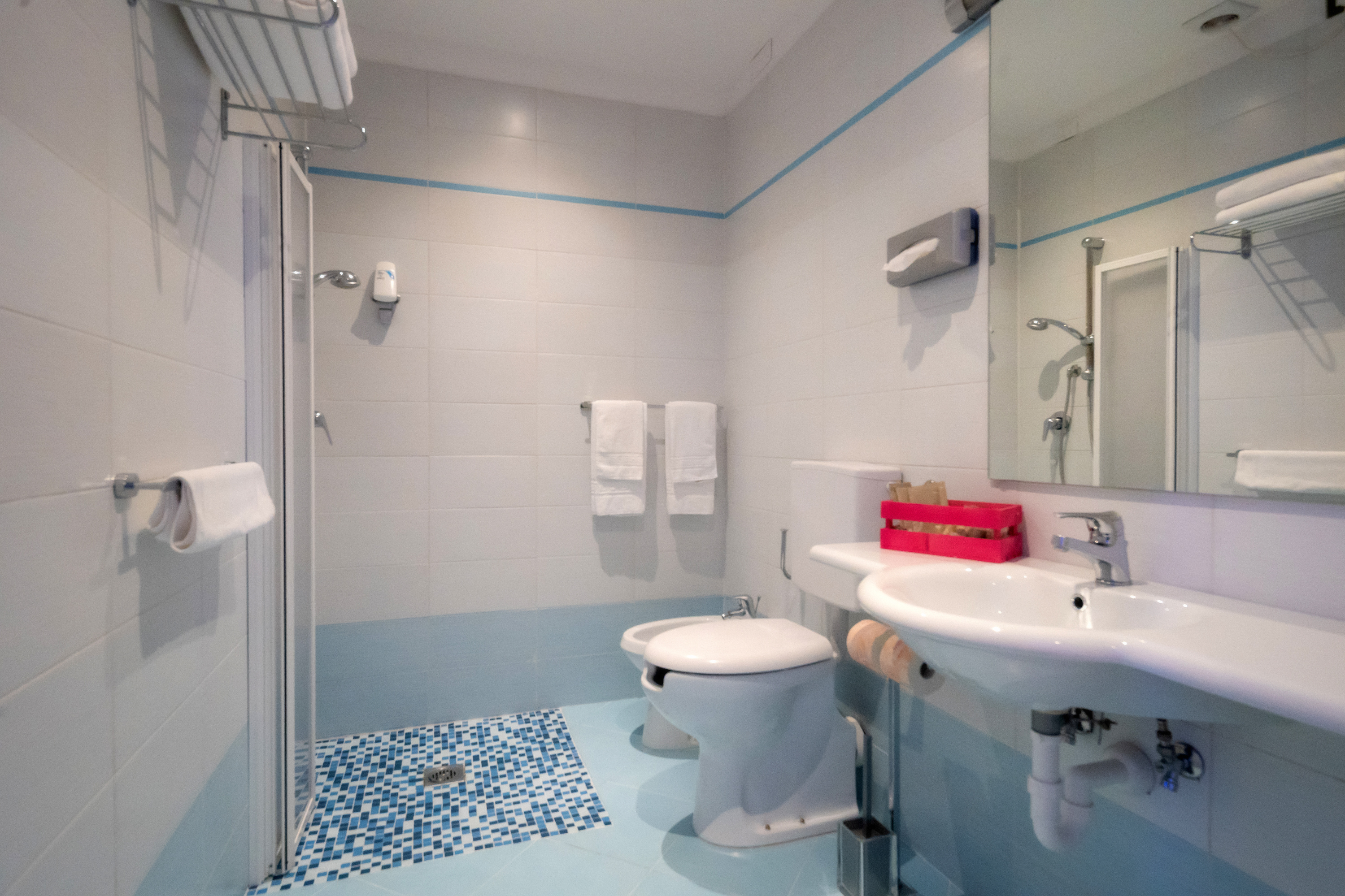 Il bagno, comune tra le due stanze, dispone di doccia, asciugacapelli, kit di cortesia e asciugamani. Il balcone privato offre un perfetto relax con uno scorcio sul mare.